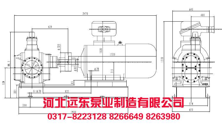 KCB3800齒輪泵安裝尺寸圖:流量228m3/h(3800L/min)壓力:0.6Mpa,吸入真空高度2米,效率44%,口徑250,配用電機(jī)功率:Y110KW-6 |