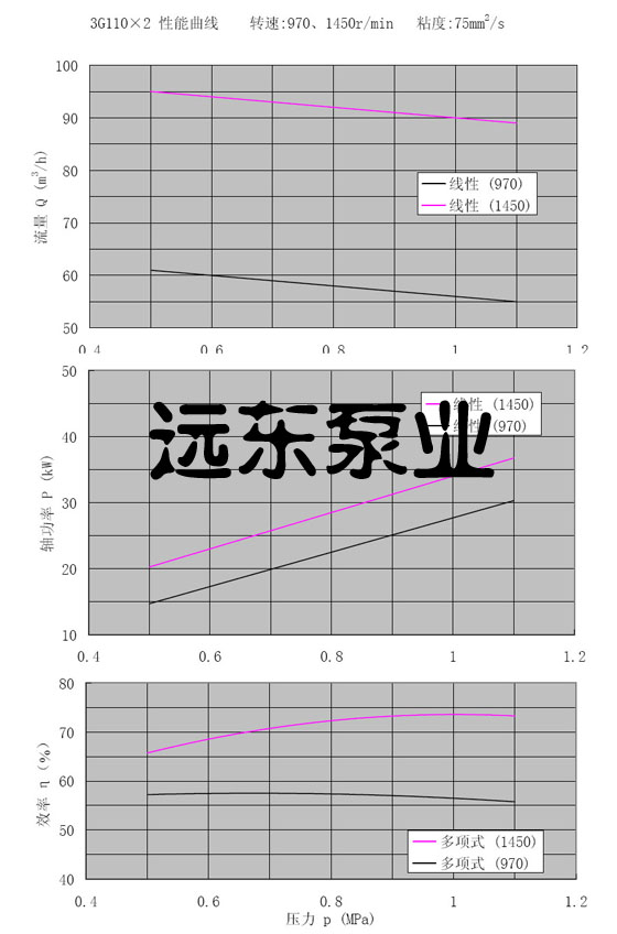 3GR110*2三螺桿泵(3gr三螺桿泵)轉(zhuǎn)速970,1450r/min,粘度75cst性能曲線圖
