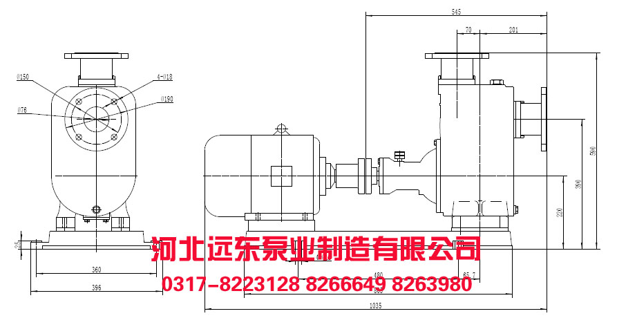 80CYZ-32自吸油泵配Y7.5KW-2電機安裝尺寸圖